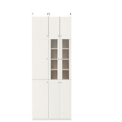 商品仕様 ■棚板タイプ: 厚棚板(厚さ2.5cm)タイプ ■棚板耐荷重: 10Kg ■外寸: 奥行46cm×高さ226〜235cm×幅45〜59cm (幅は1cm単位でオーダーできます) ■対応天井高: 226〜235cm (ラック高さ178cm+突っ張り棚高さ41cm+伸縮突っ張り金具) ■棚板枚数 移動固定棚板:7 ■扉枚数:本体棚 4枚(上下分割扉)、突っ張り棚 2枚 両開き ■半透明扉部分素材: フレーム部分/MDF 樹脂部分/ポリスチレン ■付属品: 突っ張り金具・転倒防止補助バンド・扉取付用ヒンジ・取っ手用金具(標準つまみ)・ビス ■外寸(幅): 45cm 46cm 47cm 48cm 49cm 50cm 51cm 52cm 53cm 54cm 55cm 56cm 57cm 58cm 59cm 共通仕様 ■材質: プリント化粧繊維板 ■塗装: ウレタン樹脂塗装 ■素材: ホルムアルデヒドの発生を最小限に抑えた基材・芯材・プリント紙・接着剤(F☆