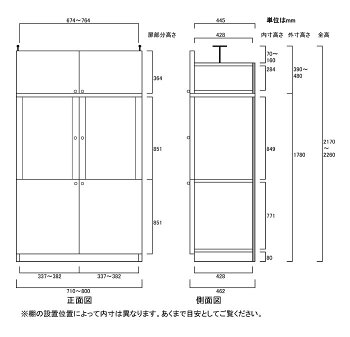 商品仕様 ■棚板タイプ: 厚棚板(厚さ2.5cm)タイプ ■棚板耐荷重: 10Kg ■外寸: 奥行46cm×高さ217〜226cm×幅71〜80cm (幅は1cm単位でオーダーできます) ■対応天井高: 217〜226cm (ラック高さ178cm+突っ張り棚高さ32cm+伸縮突っ張り金具) ■棚板枚数 移動固定棚板:6 ■扉枚数:本体棚 4枚(上下分割扉)、突っ張り棚 2枚 両開き ■半透明扉部分素材: フレーム部分/MDF 樹脂部分/ポリスチレン ■付属品: 突っ張り金具・転倒防止補助バンド・扉取付用ヒンジ・取っ手用金具(標準つまみ)・ビス ■外寸(幅): 71cm 72cm 73cm 74cm 75cm 76cm 77cm 78cm 79cm 80cm 共通仕様 ■材質: プリント化粧繊維板 ■塗装: ウレタン樹脂塗装 ■素材: ホルムアルデヒドの発生を最小限に抑えた基材・芯材・プリント紙・接着剤(F☆