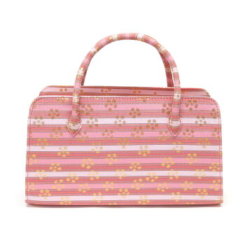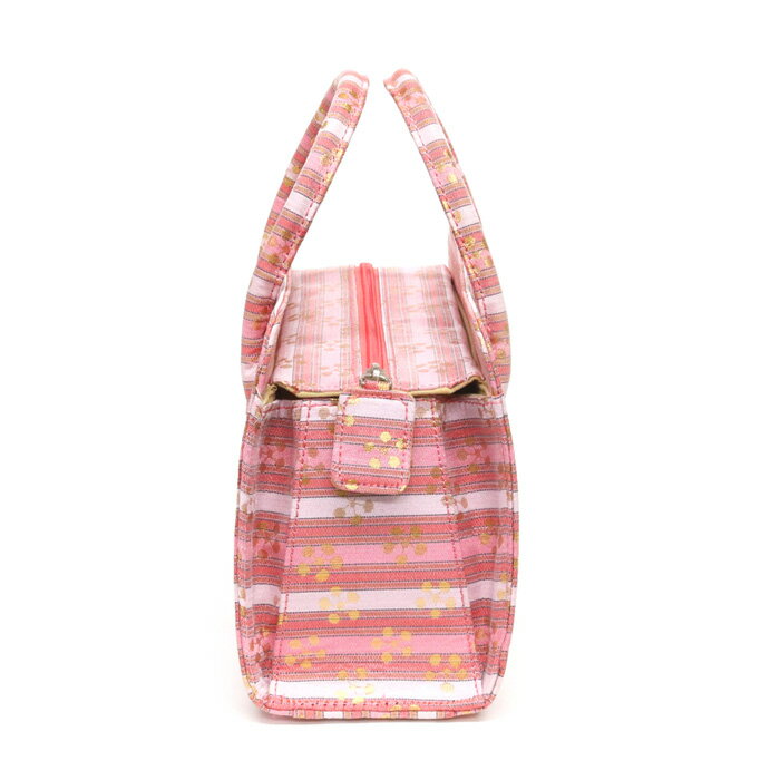 【訳あり】利休バッグ(0222A09) 金襴 縞 文様 和装バッグ ピンク