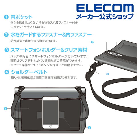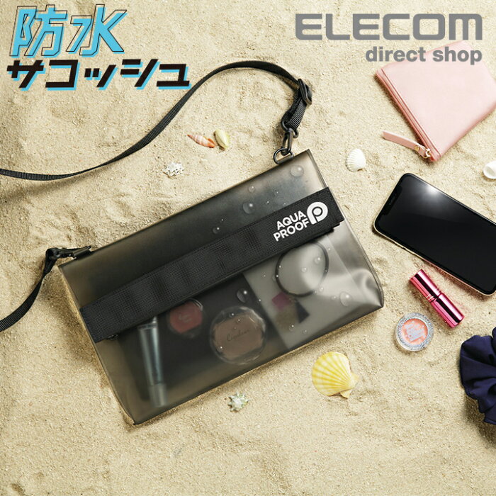 エレコム 防水 防塵 バッグ サコッシュ ショルダーベルト 付き アウトドア 水辺 プール レジャー AQUA PROOF スマホ JIS保護等級 IP45相当 ブラック P-WPBSBK