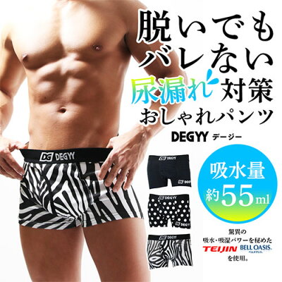 なんて経験はありませんか? 失禁 尿漏れ の悩みそのままで放置されますか? 対策パンツなら、安心、快適、スタイルまでお悩み解決のサポートに! 尿漏れ 対策 おしゃれパンツ DEGYY が自信を持っているのは 吸水量と見た目のかっこよさ! いざっという時に尿漏れパンツと分かるようなことがあってはいけませんが DEGYYなら裏返してもほとんど尿漏れパンツとわかりません。